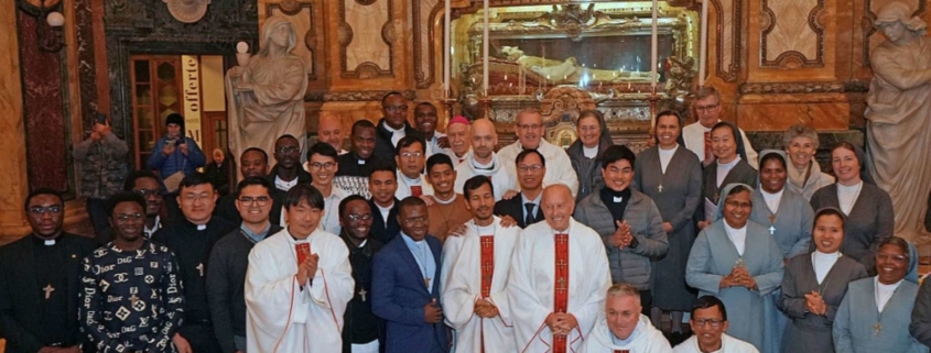 Al termine della Messa, i nuovi missionari SDB e FMA, insieme ai superiori, si sono recati in silenzio e preghiera adavanti alla tomba di Don Bosco, per affidargli la loro missione e chiedere la sua paterna benedizione. Lì, tra raccoglimento e canti, hanno elevato una breve preghiera per i giovani che li attendono in ogni parte del mondo e per tutti i missionari salesiani che li hanno preceduti. Il gesto si è concluso con una foto di gruppo, segno di comunione e continuità nella storia missionaria iniziata 150 anni fa proprio da quella stessa casa.